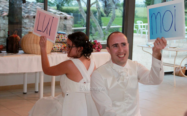 Un jeu parmi les grands classiques pour donner du rythme à votre réception de mariage ou d’anniversaire. 12 candidats désignés par les mariés, ou par tirage au sort en préparant par exemple, une enveloppe par table…